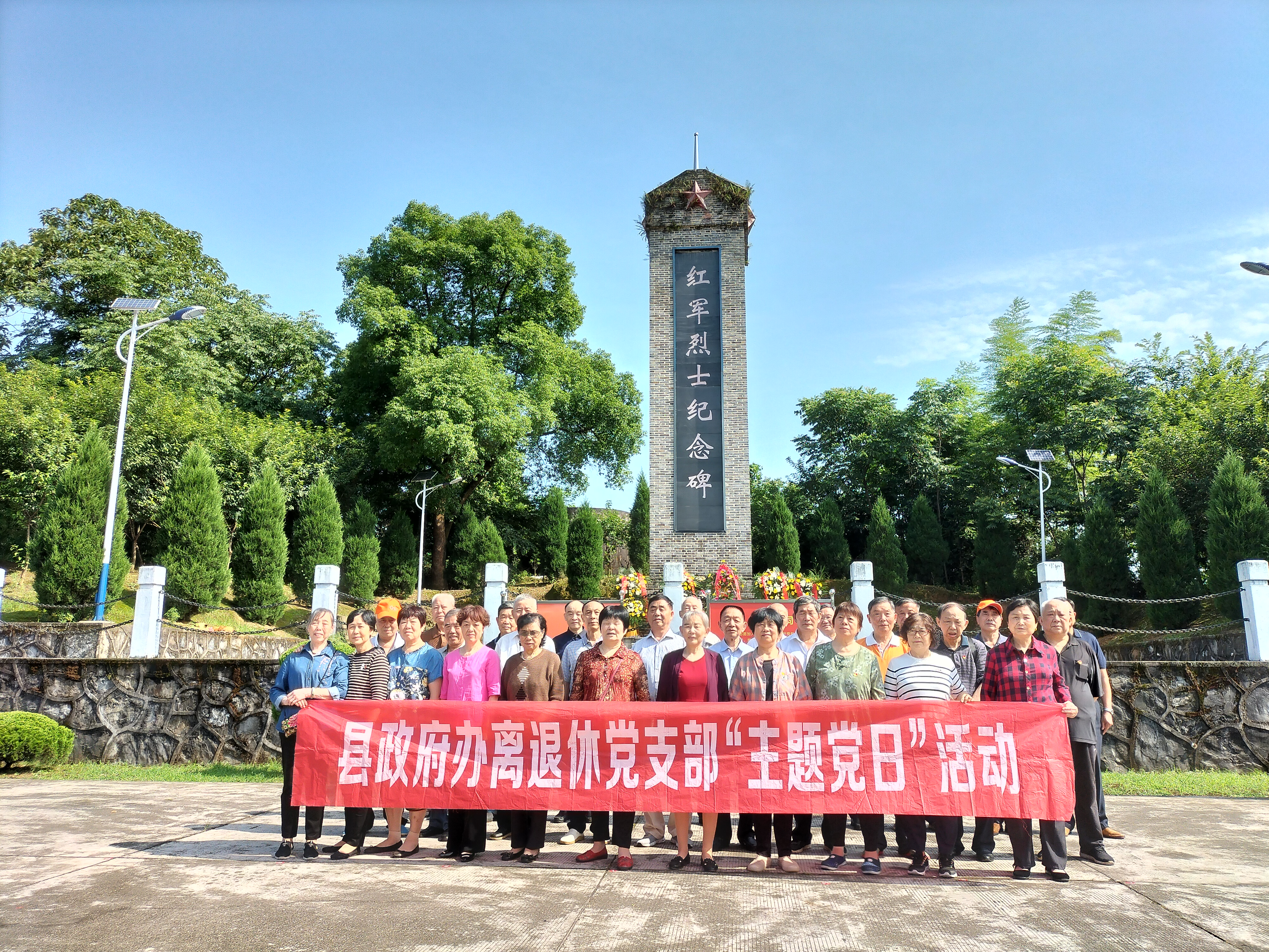 6月21日,縣政府辦離退休黨支部的黨員來到浯溪河紅軍烈士紀(jì)念碑,開展慶“七一”主題黨日活動,向烈士敬獻(xiàn)花籃,重溫入黨誓詞,進(jìn)行革命傳統(tǒng)教育。
