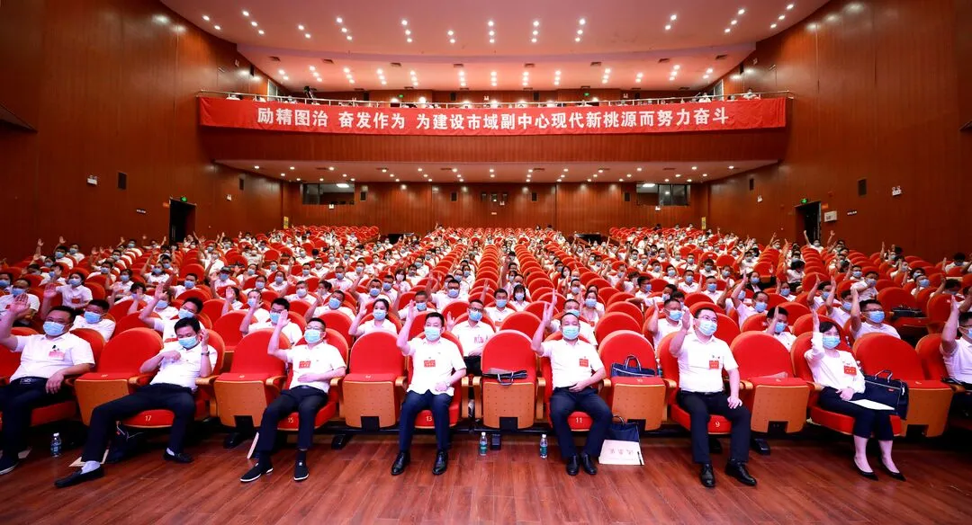 大會(huì)號(hào)召全縣各級(jí)黨組織和廣大黨員干部要更加緊密地團(tuán)結(jié)在以習(xí)近平同志 為核心的黨中央周圍,在省委、市委的堅(jiān)強(qiáng)領(lǐng)導(dǎo)下,在“一三五”發(fā)展思路的科學(xué) 引領(lǐng)下,不忘初心、牢記使命,勵(lì)精圖治、奮發(fā)作為,為建設(shè)“市域副中心,現(xiàn)代 新桃源”而努力奮斗。