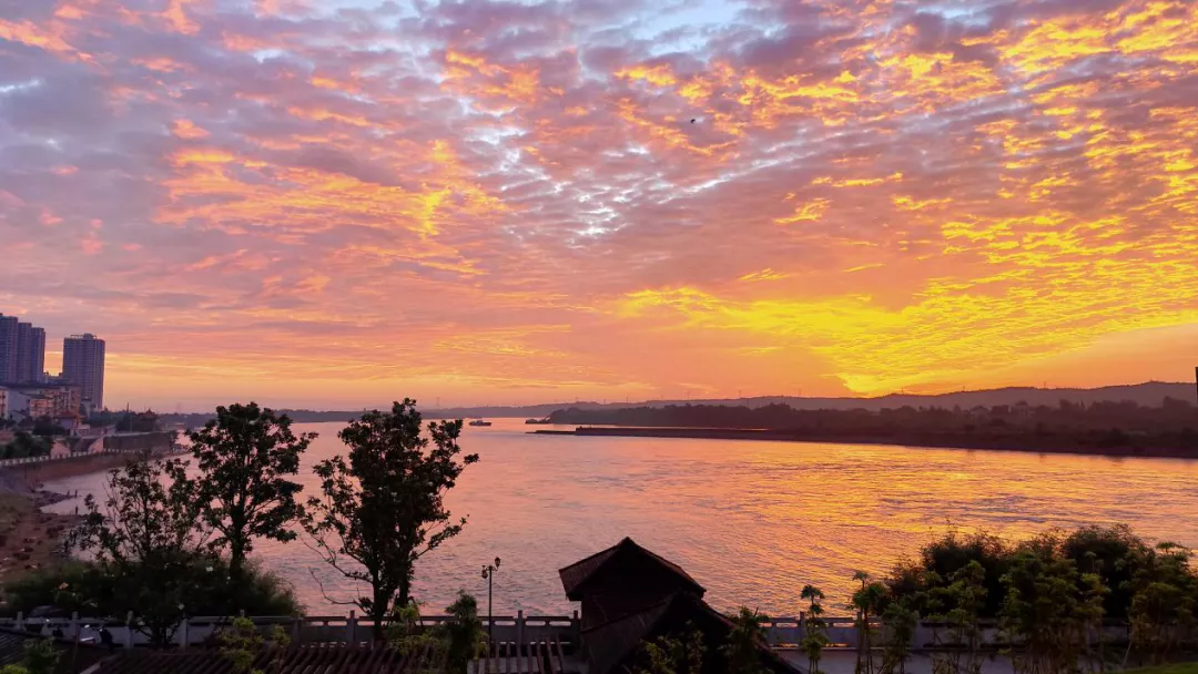 沅江黎明,朝霞滿天