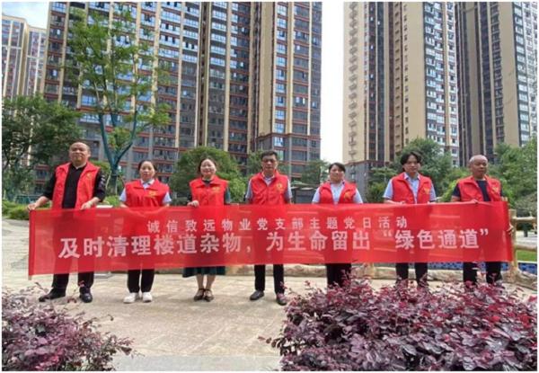 6月6日, 常德市誠(chéng)信致遠(yuǎn)物業(yè)黨支部在誠(chéng)信廣場(chǎng)園區(qū)開(kāi)展“及時(shí)清理樓道雜物,為生命留出綠色通道”主題黨日活動(dòng)。