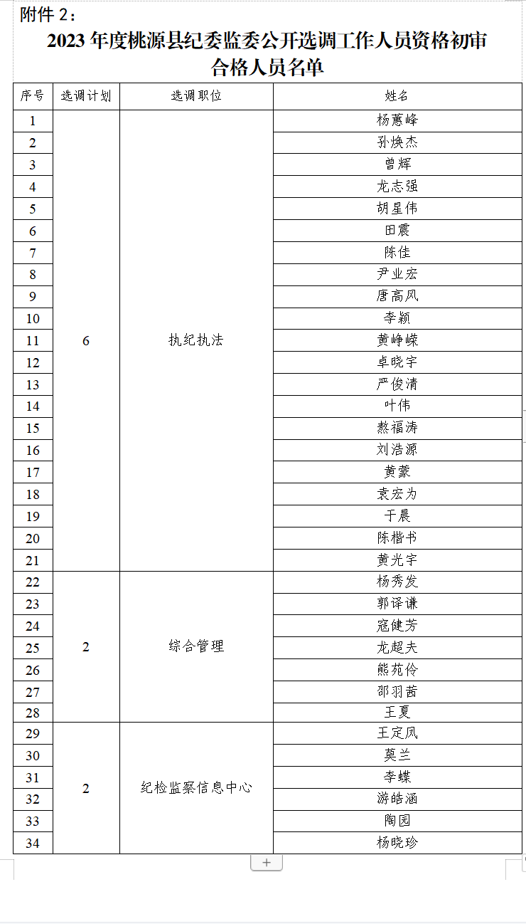2.2023年度桃源縣紀委監(jiān)委公開選調(diào)工作人員資格初審合格人員名單