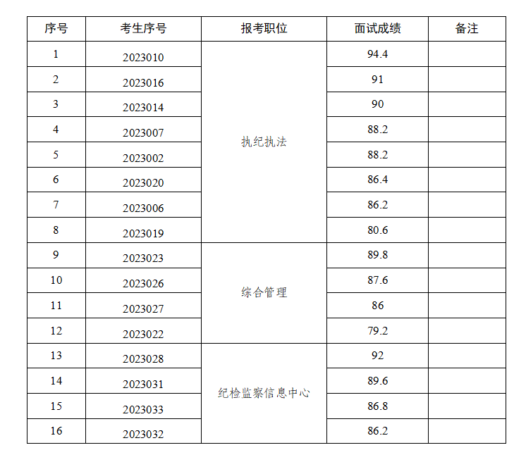 2023年桃源縣紀(jì)委監(jiān)委公開(kāi)選調(diào)工作人員,目前已經(jīng)完成面試工作,現(xiàn)將面試成績(jī)公布如下:
