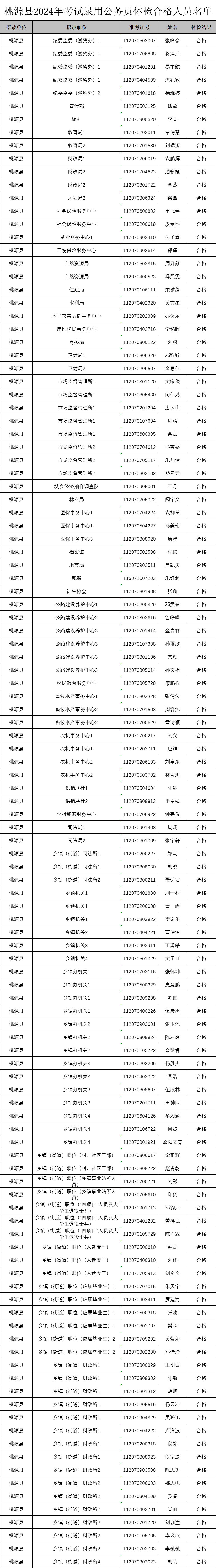 附件:桃源縣2024年考試錄用公務(wù)員體檢合格人員名單