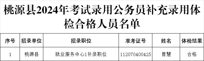 附件:桃源縣2024年考試錄用公務(wù)員補(bǔ)充錄用體檢合格人員名單
